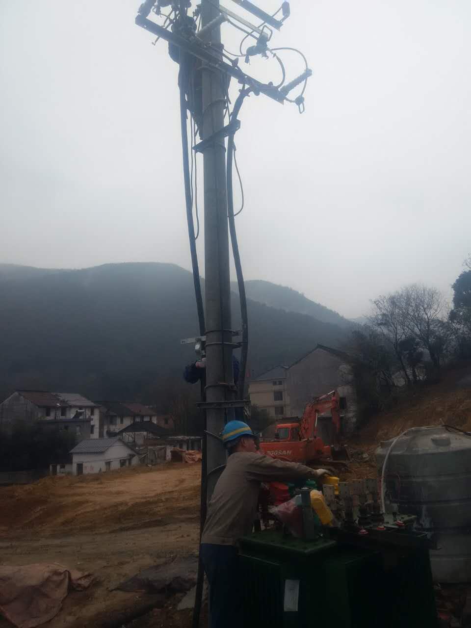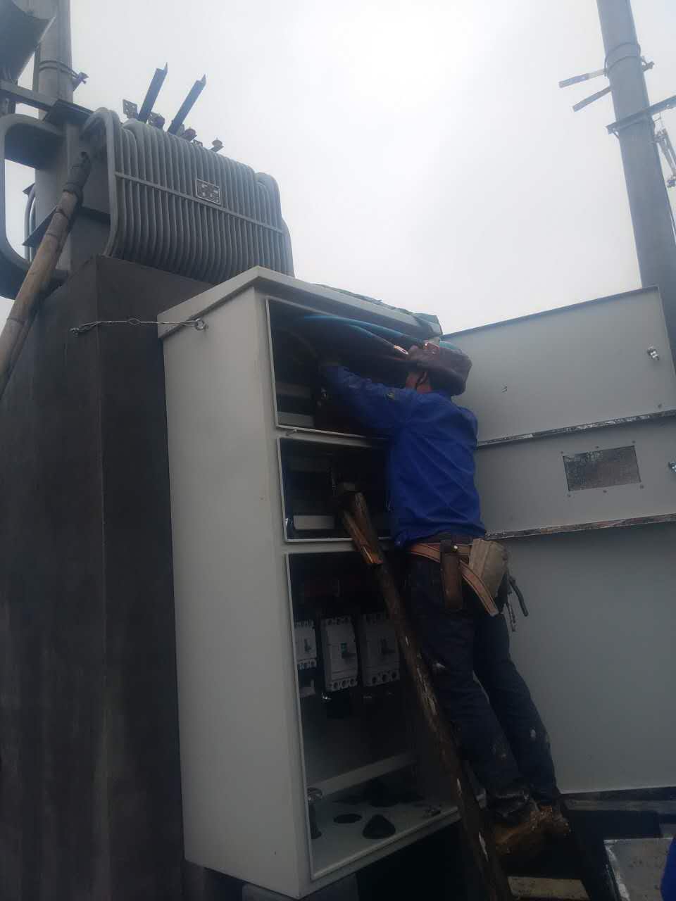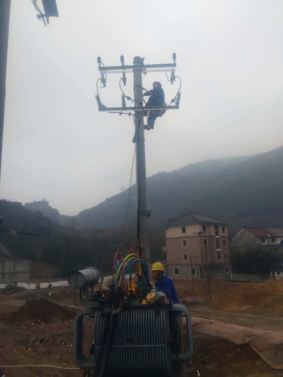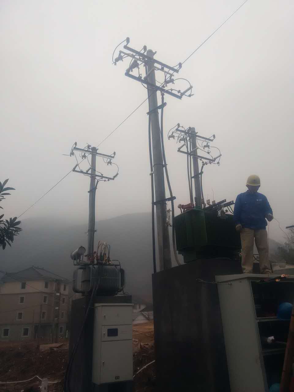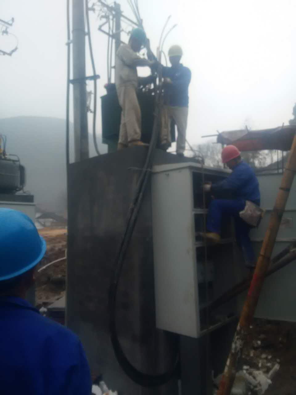在施工环境不是很理想,天气不是很好的情况下,班组成员齐心协力,共同配合,在保证安全及施工工艺完善的情况下,顺利的完成了其中二台变压器的临变施工。