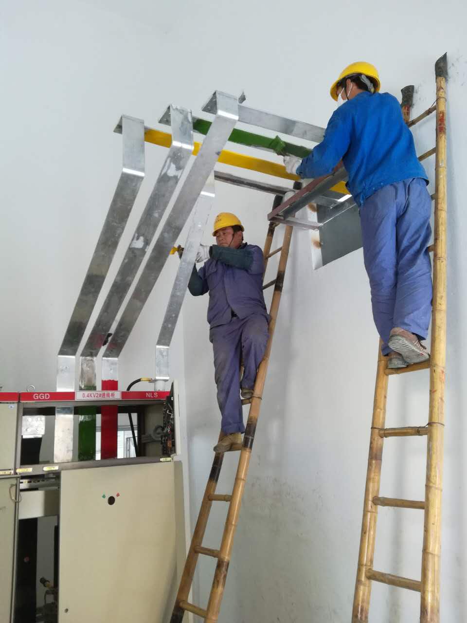 由于厂区不是全部停电,而只是部分停电,工作负责人及时进行了安全防范措施,“安全是效益的基石,隐患是事故的根源”。做好安全措施下,班组成员按照工作负责人分配的工作,对高低压柜进行了配电安装施工。在配电施工期间,在保证施工质量完善的情况下,也保证施工工艺质量的完善,“生产规范,安全规范”的警示语始终牢记在心。