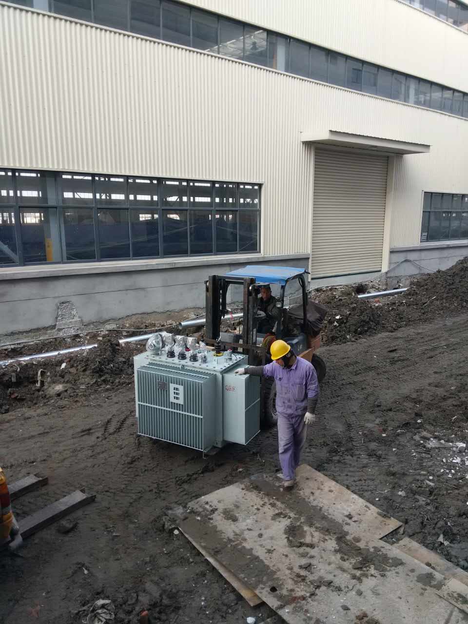 因浙江梅轮电梯股份有限公司新造一配电房,需要设备进场。我公司派班组及班组人员去现场组织下柜及安装就位施工。