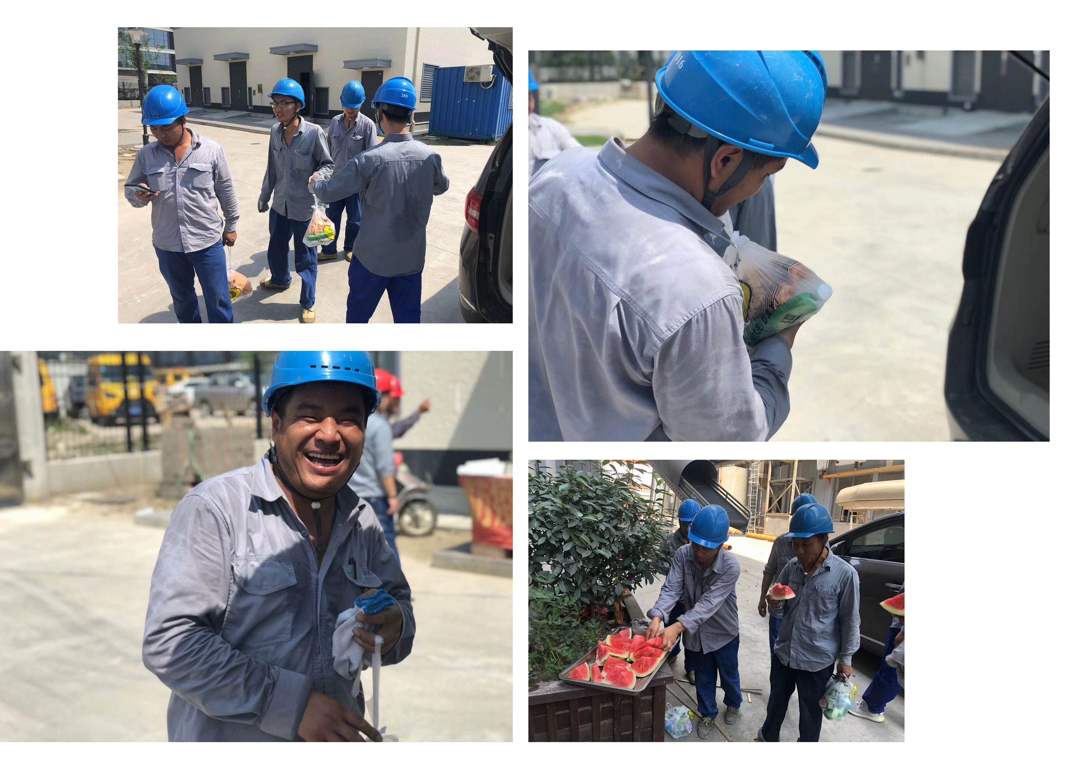 此次互动中,公司为一线职工准备了西瓜,盐汽水,各类防暑药品等多种慰问物资。慰问现场,各班组成员有序领取物资,大家喜笑颜开。在施工现场,公司领导与一线职工亲切交谈,对职工的辛勤付出表示感谢,对职工不畏酷暑、守岗敬业的精神给予了肯定,并叮嘱他们在高温中工作要注意防暑,保障自身的安全健康。董事长更是提到要充分认识做好一线职工防暑降温工作的重要性,通过开展“送清凉”系列活动,切实把防暑降温工作和劳动安全保护措施落实到每个班组,每个岗位和每一名职工,确保平安度夏。
